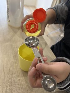 調味料の計量も、レシピを見ながら子どもたちで行います。