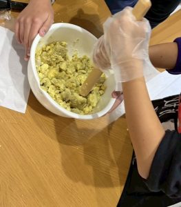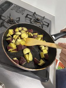 スイートポテトは、潰す工程からお友達と協力して取り組みました。