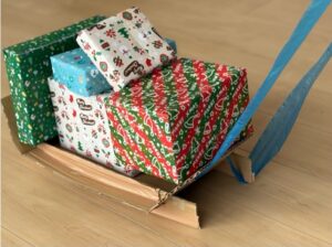 末広のぷかぷかでは「プレゼント積みゲーム」「プレゼント運びリレー」「ツリー飾りつけゲーム」「おやつクッキング」を日替わりで行っており、こちらはプレゼント運びリレーの様子になります🎁