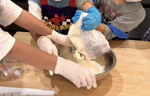 低学年は生地をこねこね🥪発酵するまではお昼ご飯を食べて待ちます。