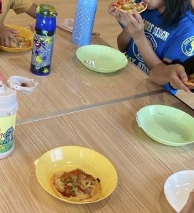 待ちに待ったオヤツの時間 みんなで協力して作ったピザ🍕の味は格別だったようで「おかわり!」の声がたくさん聞かれましたよ!