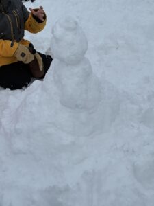1種目目は雪だるま作り競争をしました。4チームに分かれそれぞれ雪だるまを作って、どのチームが1番高く作れるか競争しました☃️