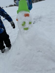 2種目目は雪だるまふくわらいをしました😊目隠しをした子にリーダーが指示を出し顔を作りました。